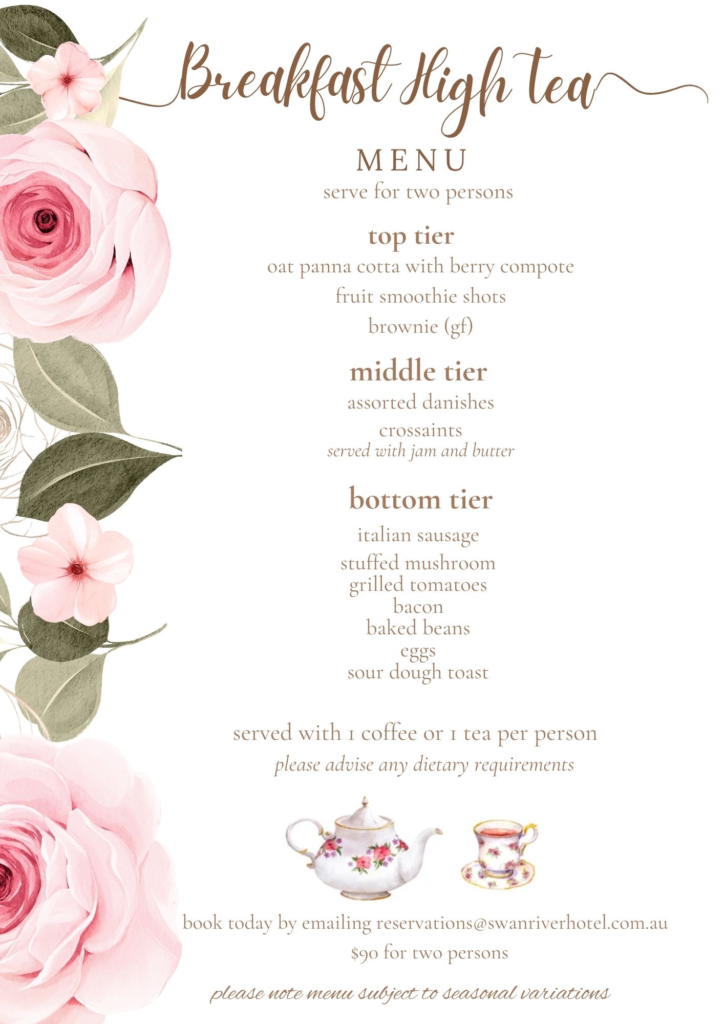 For HIGH TEA BOOKINGS please CLICK HERE FOR RESERVATIONS